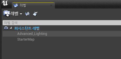 창 메뉴에서 레벨을 선택하면 레벨 창을 열 수 있다. 월드 컴포지션을 활성화 시키고 나면 레벨창에 모든 레벨이 목록으로 보인다.