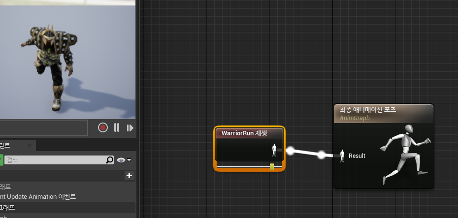 - WarriorRun 애니메이션 재생 노드를 최종 애니메이션에 연결
