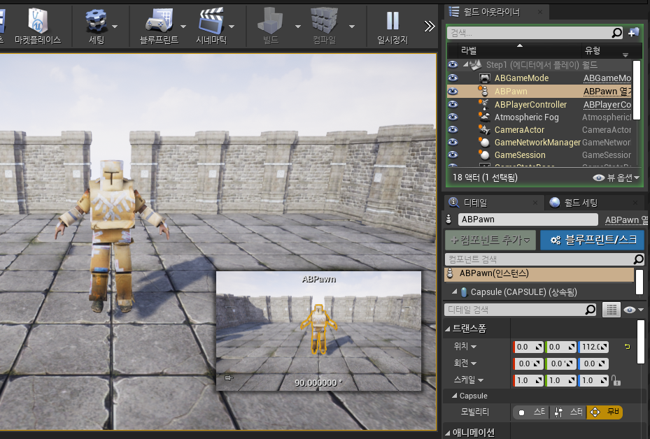 - Capsule : 폰의 움직임을 담당하는 충돌 컴포넌트 (루트 컴포넌트)