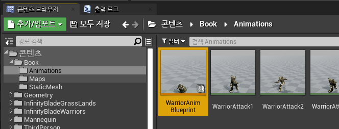 - 애셋 이름을 WarriorAnimBluprint 로 지정