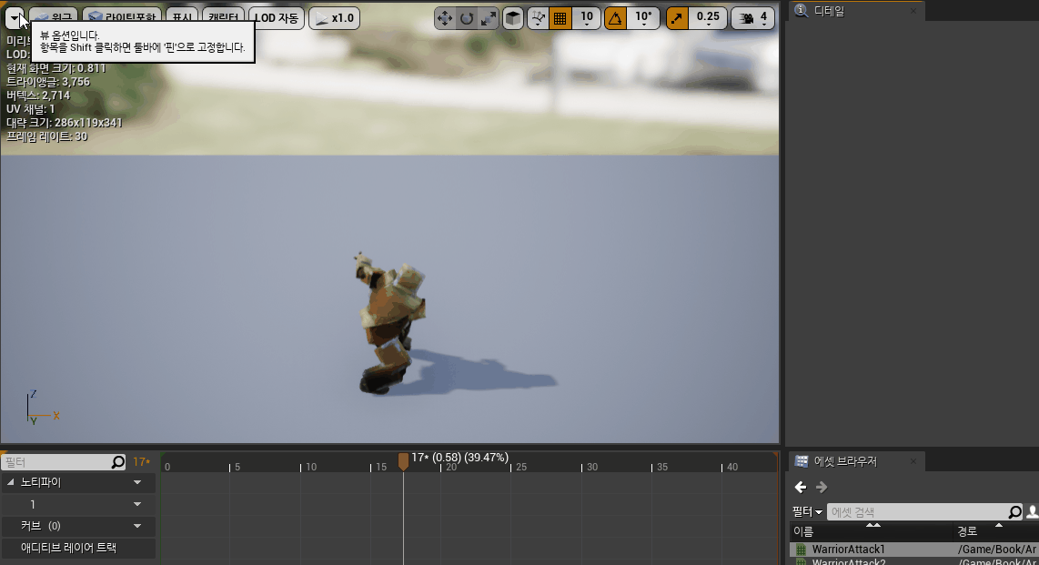 다음 예제를 위해 마켓플레이스의 InfinityBlade : Warriors 패키지를 다운로드 하고 프로젝트에 추가하였다.