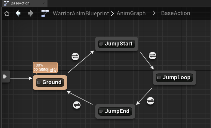 - Ground -> JumpStart 는 IsInAir 변수가 true 일 때