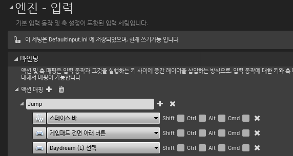 삼인칭 템플릿에서 이미 설정이 되어있는 Jump 입력을 연동하여 점프기능을 구현해 보자.