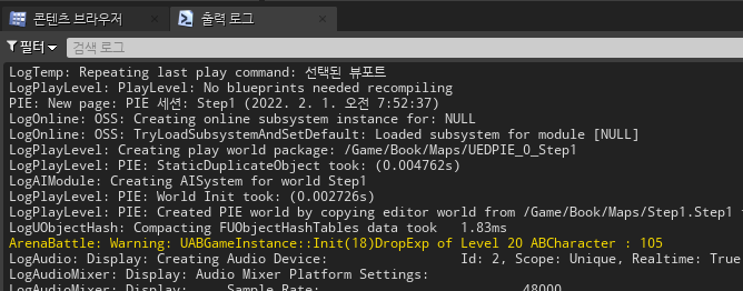 그리고 ABGameInstance의 Init함수를 구현하여 로그를 찍어보자