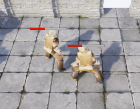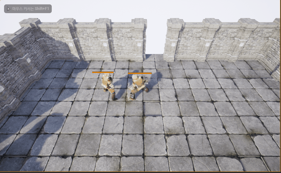 컴파일후 실행을 해보면 HPBar가 캐릭터 머리위에 띄워져 있음을 확인할 수 있다.