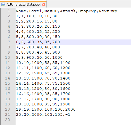 CSV 파일을 읽어들이기 위해 구조가 동일한 구조체를 선언해야한다 FTableRowBase 구조체를 상속 받은 FABCharacterData 라는 구조체를 선언한다.