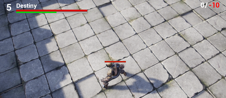 ABHUDWidget 이외에도 코드 작업이 있지만 내용이 많아 생략하였다. 코드 작성후 플레이를 해보면 캐릭터의 스탯 정보가 HUD에 연동되어있음을 확인할 수 있다.