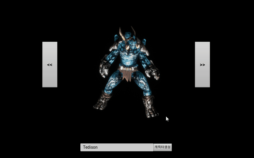 UI_Select 애셋의 부모클래스를 ABCharacterSelectWidget 으로 변경하여 캐릭터 변경 버튼이 동작함을 확인할 수 있다.