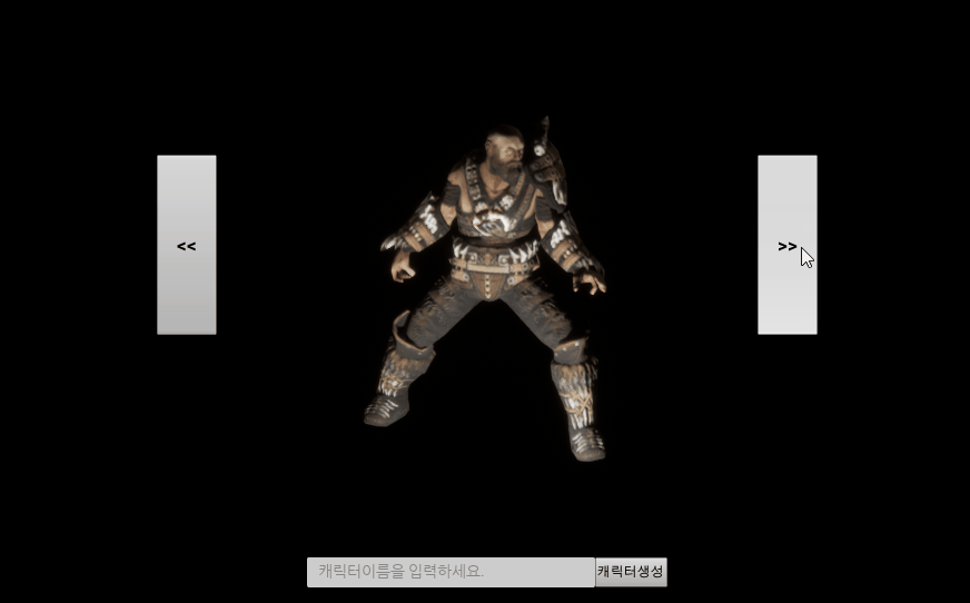 플레이를 해보면 캐릭터 선택화면이 보여짐을 확인 할수 있다.