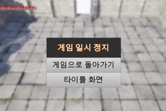 빌드후 메뉴버튼을 테스트해보면 게임으로 돌아가거나 타이틀로 돌아가는 것을 확인할 수 있다.