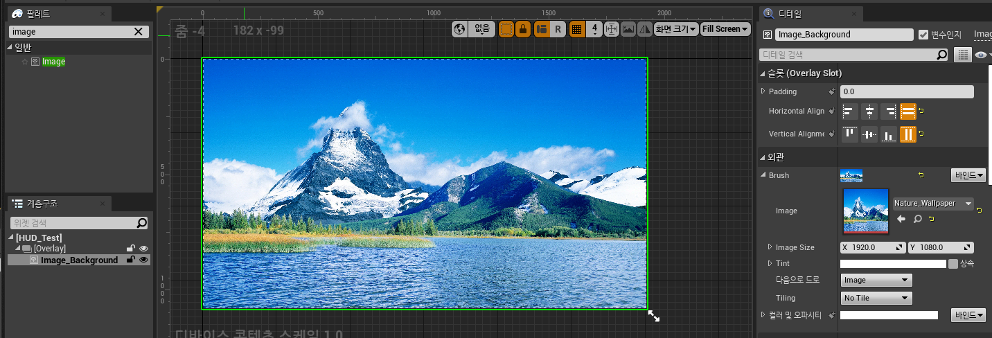 Overlay 슬롯에 가득찬 Image를 추가하였다.