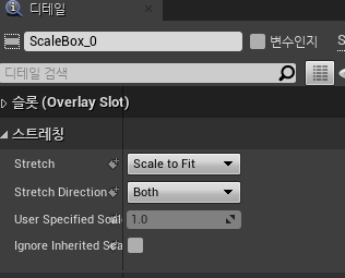 Scale Box의 스트레칭 옵션으로 상하 혹은 좌우만 늘릴 것인지 상하좌우 모두 늘릴것인지 설정 할 수 있다.