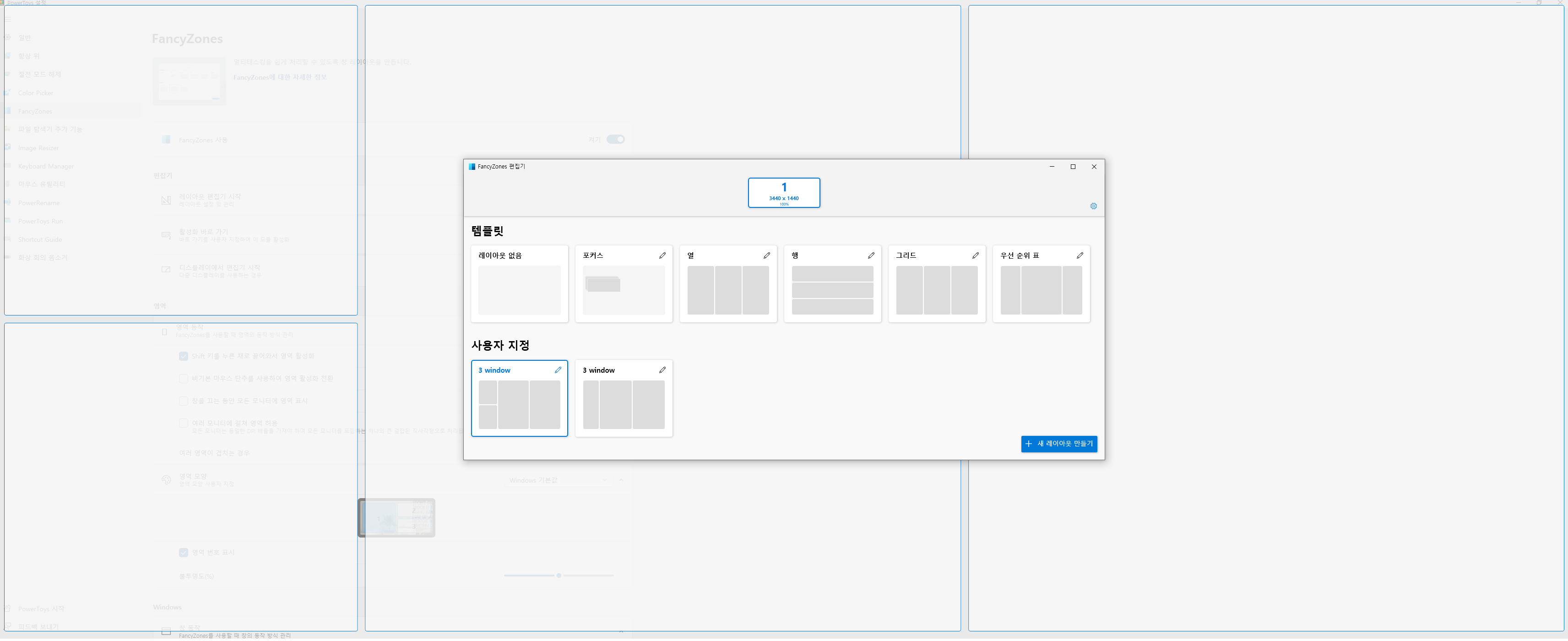 - PowerToys 실행 > FancyZones > 레이아웃 편집기