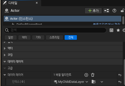- 액터의 디테일 패널에서 데이터 레이어 섹션을 사용