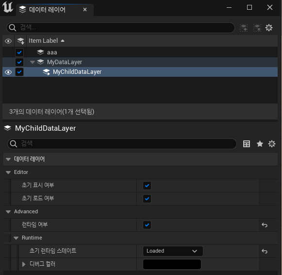 - 데이터 레이어를 삭제해도 WorldDataLayer 파일에만 영향을 준다. 삭제된 데이터 레이어와 연결되어 있던 액터는 수정할필요가 없이 자동으로 정리된다.