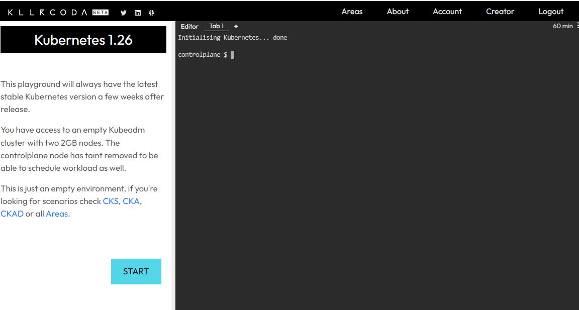 - Killercoda -> Playgrounds -> Kubernetes 접속