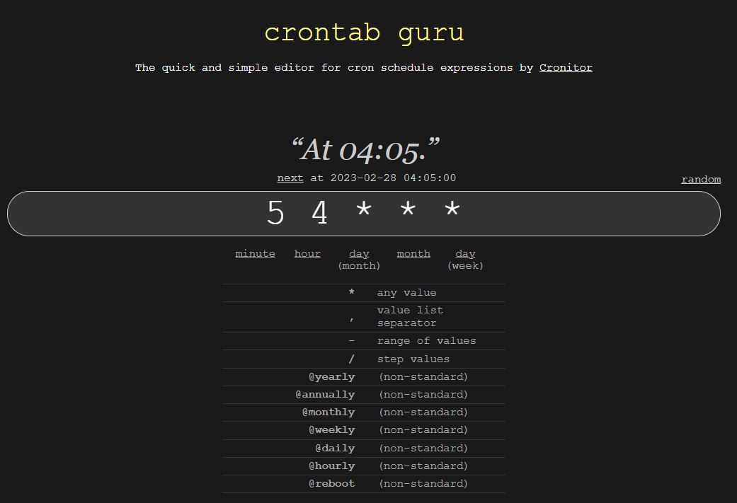 항상 크론탭(Crontab) 문법을 작성할 일이 있으면 햇갈려서 그때 그때 다시 찾아봤어야 했었다. 최근 공부 중에 쉽게 크론탭 문법을 작성해주는 사이트를 알게되어 기록해둔다.