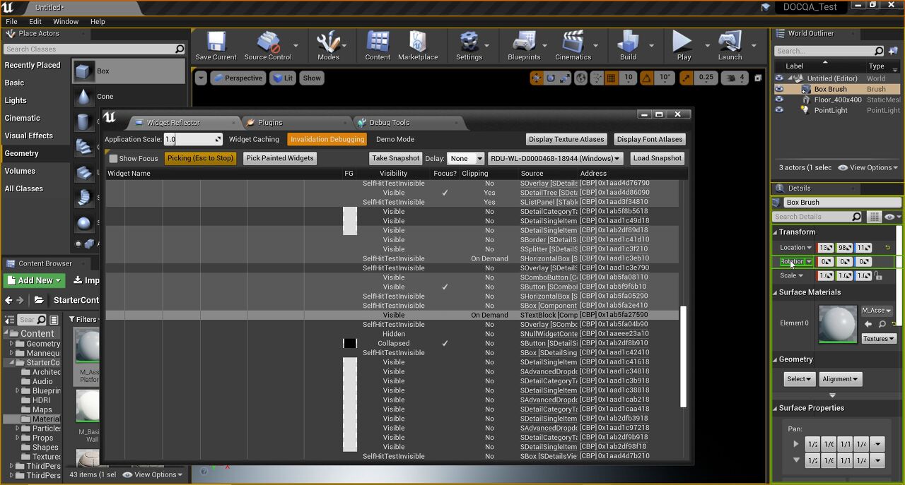 Slate 위젯 리플렉터는 UI와 관련 코드를 디버깅하고 분석할 수 있다. 버그와 예상치 못한 행위를 추적하는데 뿐 아니라, 유저 인터페이스의 프로파일링과 최적화하는 데도 도움된다.